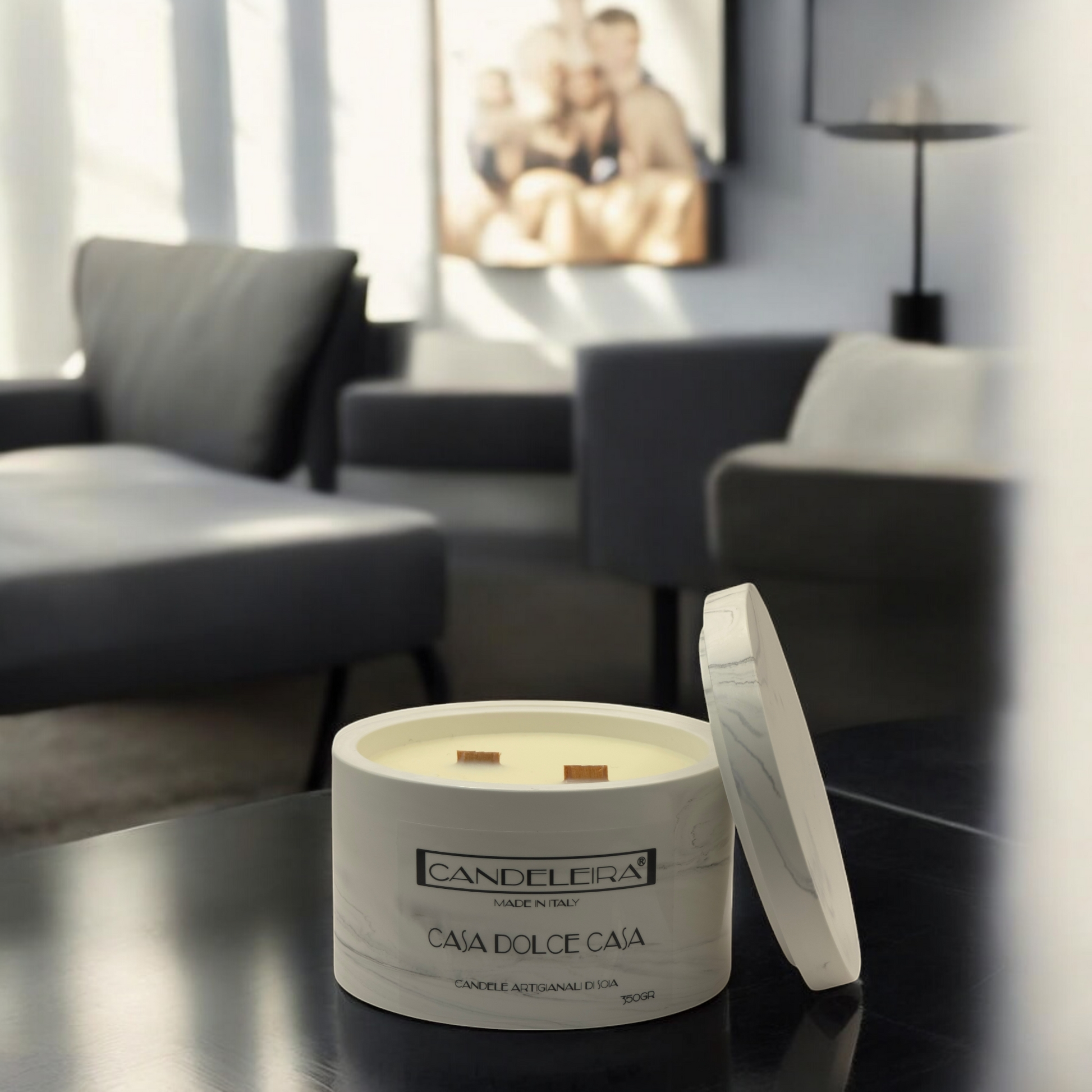 Prendersi cura di una candela è essenziale per garantirne una lunga durata e un utilizzo sicuro. Ecco alcuni consigli su come prendersene cura: Tagliare lo stoppino: Prima di ogni accensione, assicurati di tagliare lo stoppino a circa 5-6 mm. Questo evita una fiamma troppo alta e fumo eccessivo, migliorando la combustione. Evitare correnti d'aria: Posiziona la candela lontano da finestre aperte, ventilatori o correnti d'aria. Questo aiuta a mantenere la fiamma stabile e a evitare che la cera si sciolga in modo irregolare. Lasciare che la cera si sciolga uniformemente: Durante la prima accensione, lasciala bruciare abbastanza a lungo affinché lo strato superiore di cera si sciolga uniformemente da bordo a bordo. Questo previene la formazione di un "tunnel" nel tempo. Spegnere correttamente la candela: Usa un attrezzo o immergi lo stoppino nella cera fusa per spegnerla. Evita di soffiare sulla fiamma, poiché ciò può causare schizzi di cera. Conservare in un luogo fresco e asciutto: Proteggi la candela dalla luce diretta del sole e da condizioni di calore estremo per evitare che la cera si deformi o scolorisca.